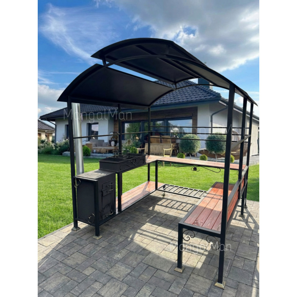 Мангал с крышей и печкой Лофт премиум