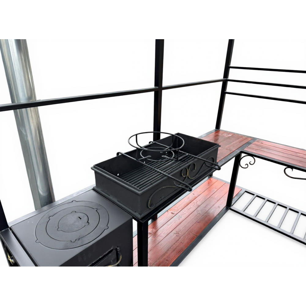 | Высота, см230 | Жаровня, см90 * 36 * 16 | Печь, см42 * 40 * 35 |